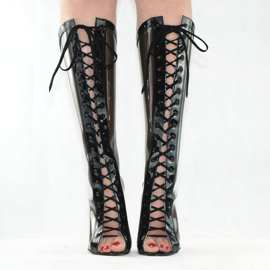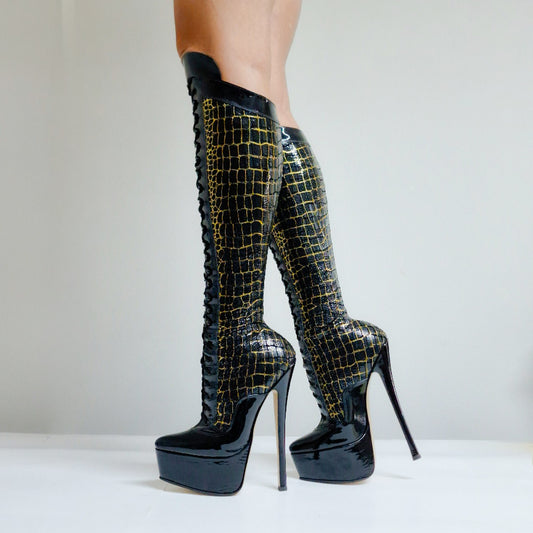 "The Ring Master" Lace-Up Knee-High Stiletto Boot With Platform (Custom Made)