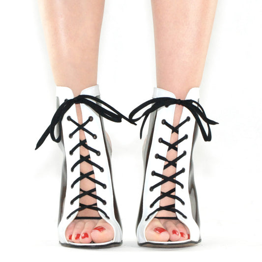"Ruth" Lace-Up Open Toe Ankle Boots (In Stock)