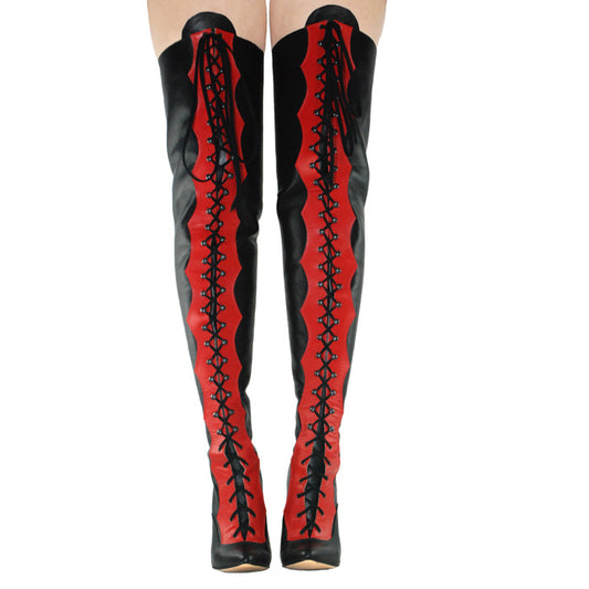 "Regina" Lace-Up Thigh-High Stiletto Boot (Custom Made)
