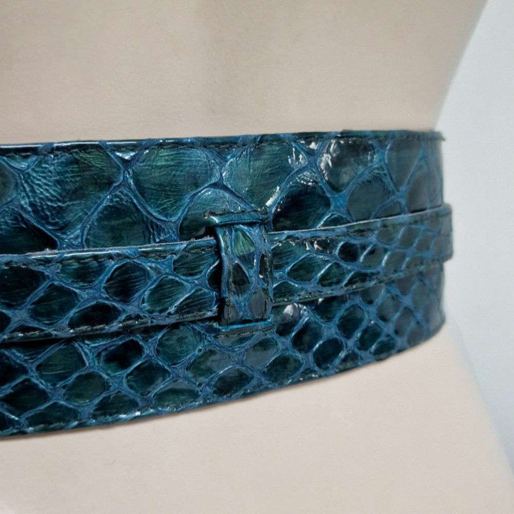 Made from high quality leathers. Shown here in teal crocodile printed leather with grey leather lining.